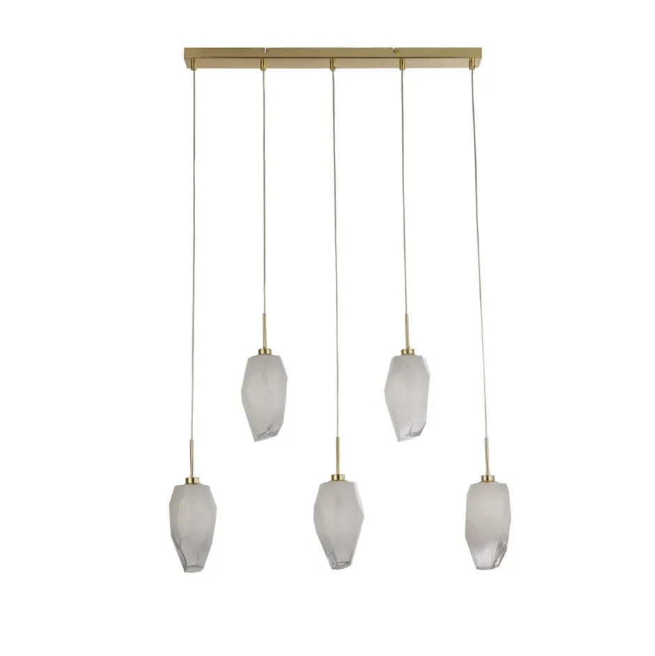 Moderne Pendelleuchte aus Stahl und Glas in Messing