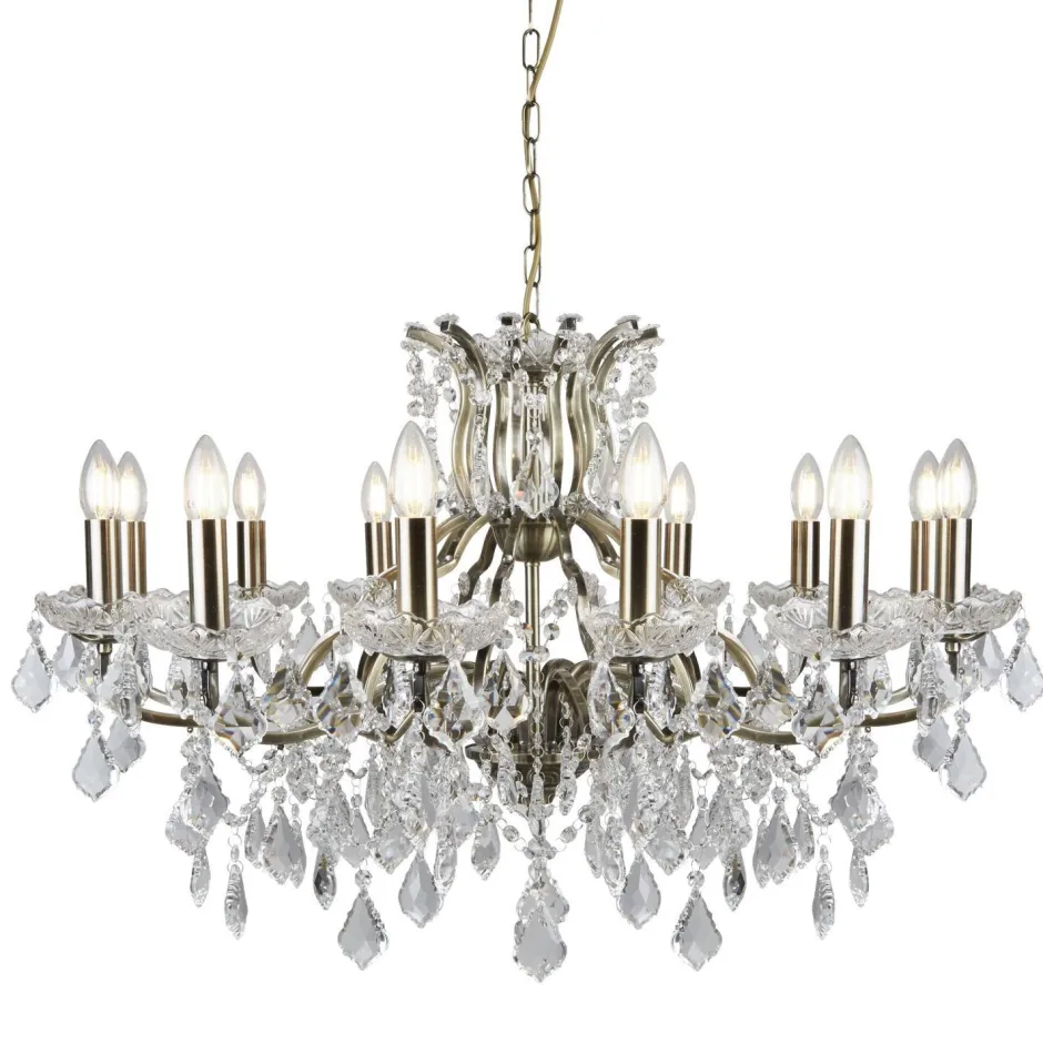 Der opulente Lüster besticht durch seine floralen Verzierungen und funkelnde Glaskristalle – ein dekoratives Highlight in jedem Schlafzimmer, Wohnzimmer und Esszimmer