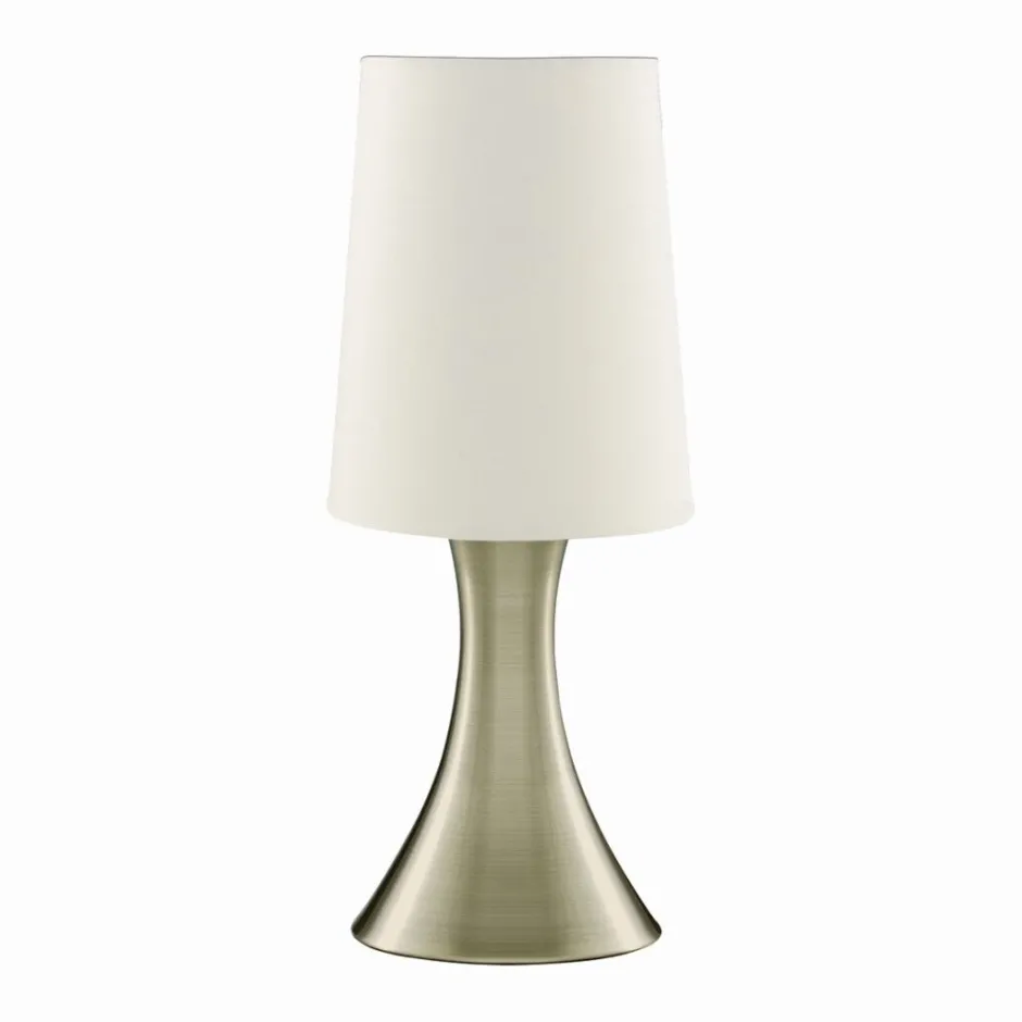 Modern Leuchte in Messing antik, Weiß aus Stoff, Metall