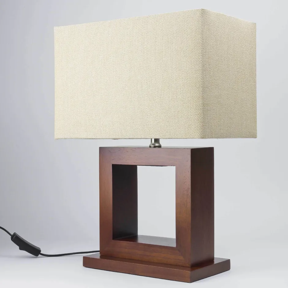 Modern Leuchte in dunkles Holz, Beige aus Holz, Stoff