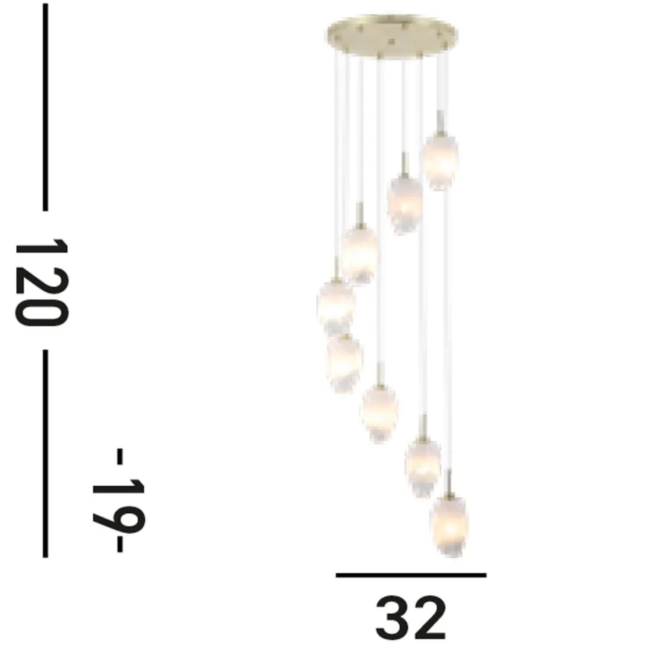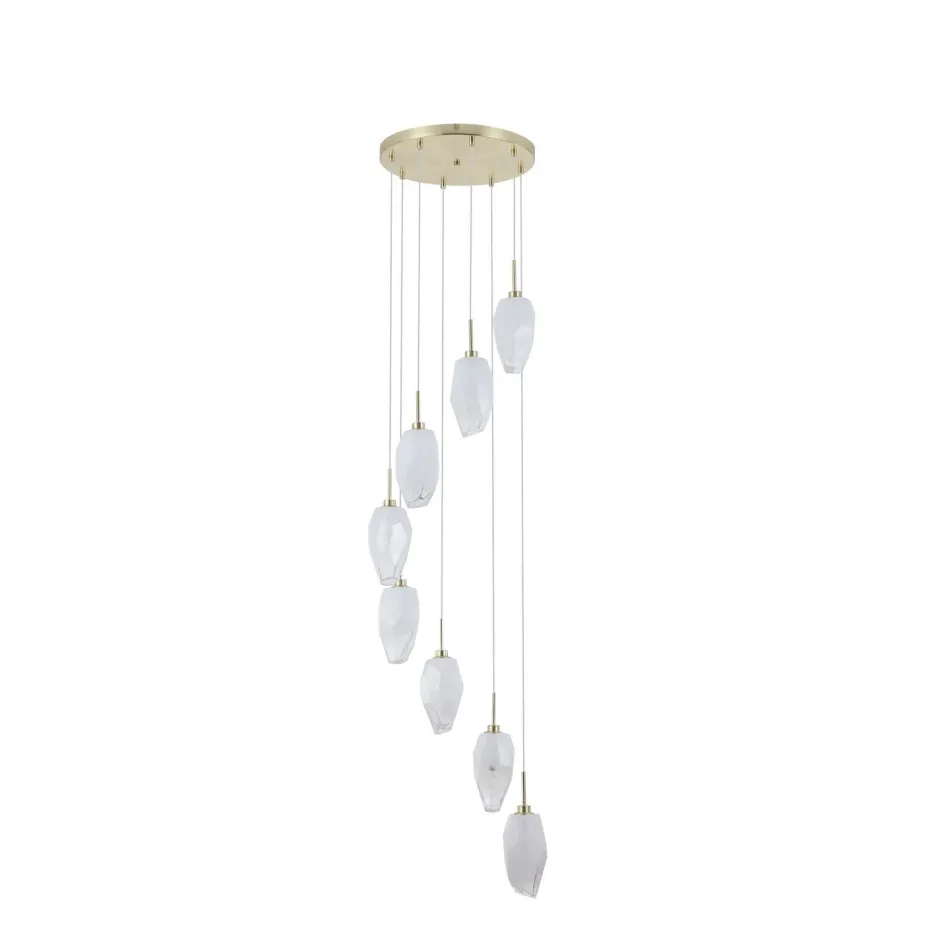 Moderne Pendelleuchte aus Stahl und Glas in Messing