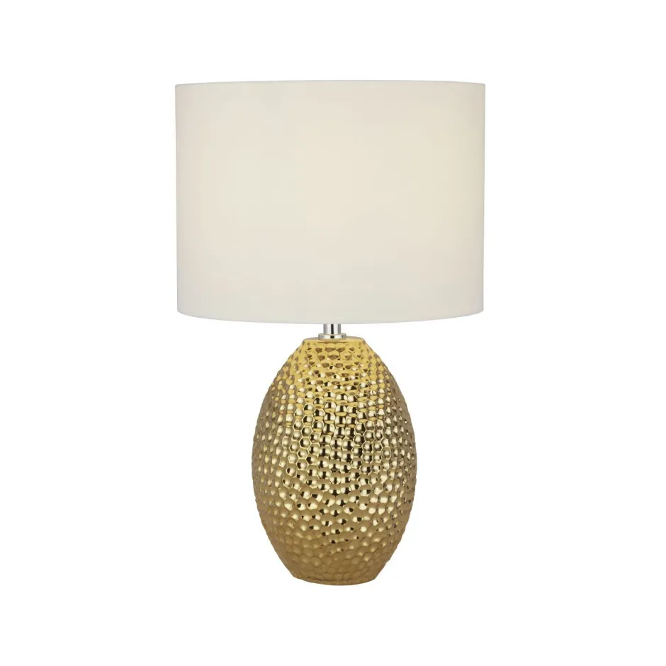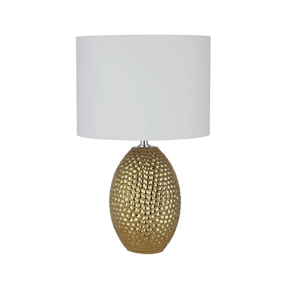 Stilvolle Tischleuchte mit dekorativem Keramik Fuß in Gold