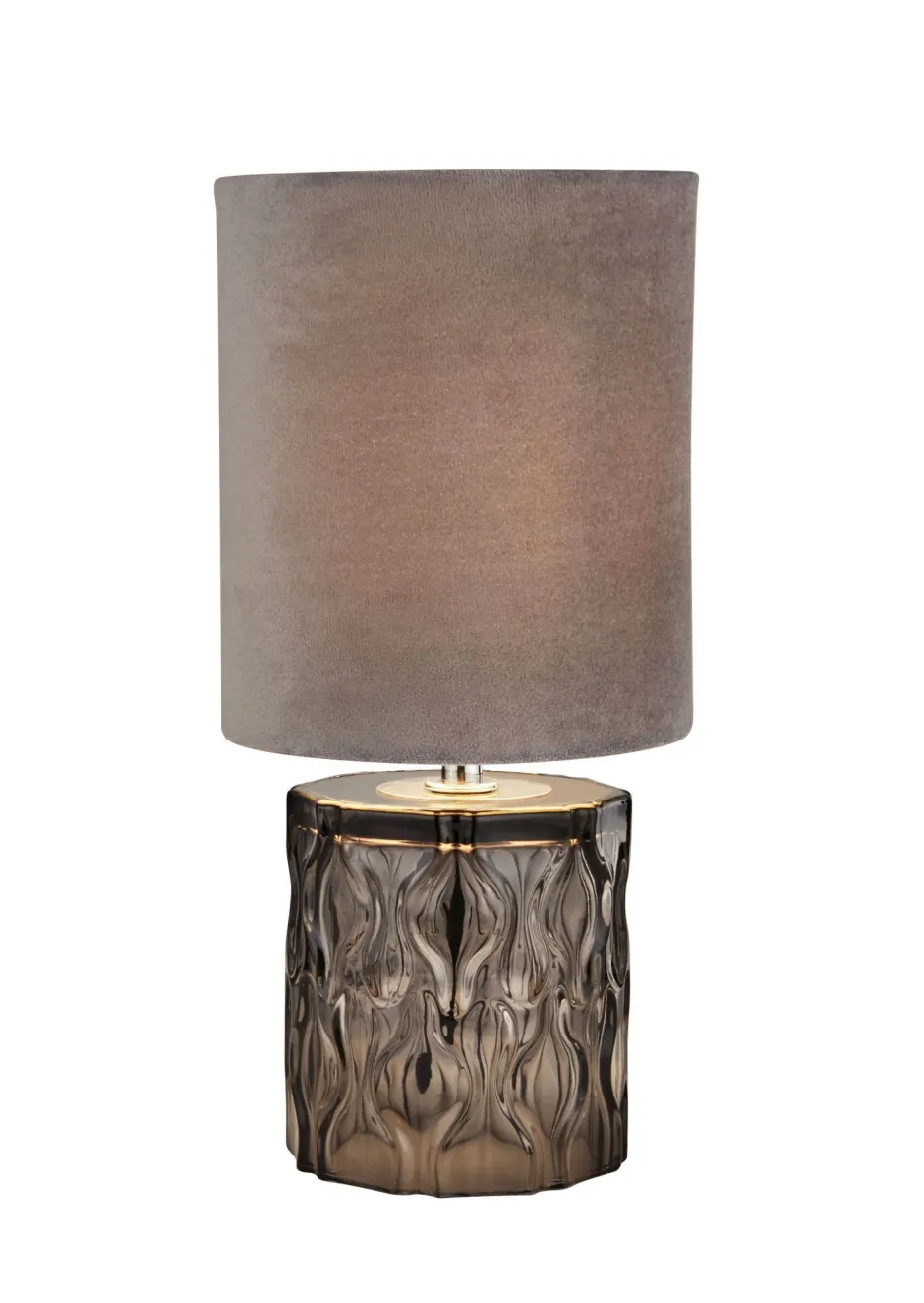 Kleine Tischleuchte mit kunstvollem Fuß aus Rauchglas