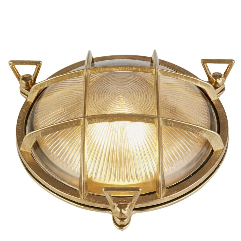 Maritime Außenleuchte aus rostfreiem Messing und robustem Riffelglas