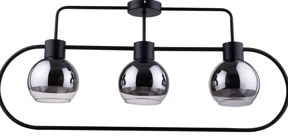 Moderner Design Deckenleuchte aus lackiertem Stahl und Glas in Schwarz und Silber