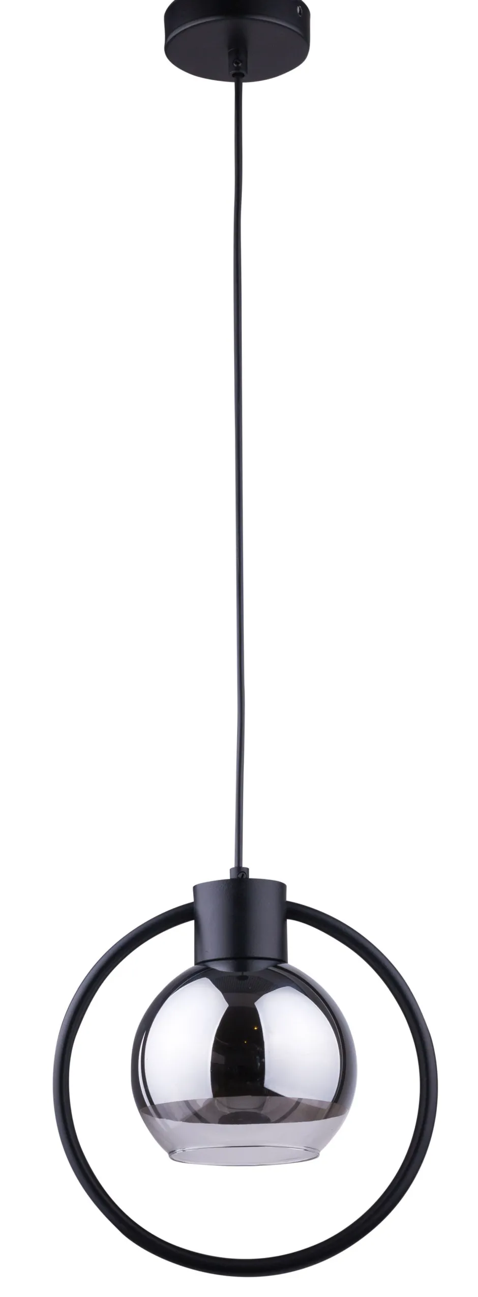 Moderne Design Pendelleuchte aus lackiertem Stahl und Glas in Schwarz und Silber