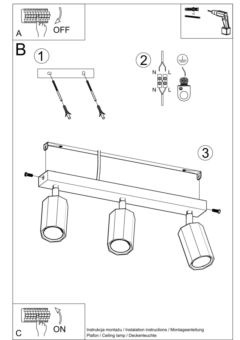 | Fassung: | 3x GU10 max. 40W |