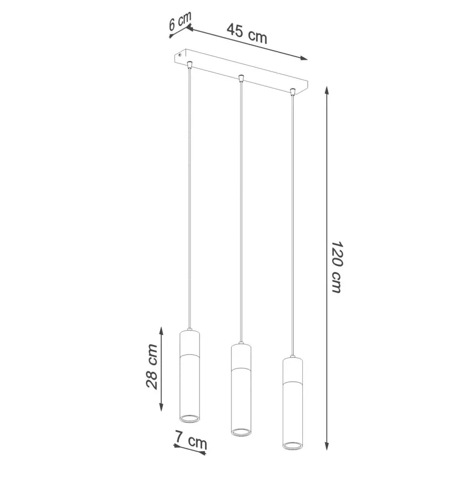 | Maße: | Breite: 60 mm | Hängetiefe: 1200 mm | Länge: 450 mm | Durchmesser Schirm: 70 mm | Höhe Schirm: 280 mm | Durchmesser Sockel/Wandhalterung: 70 mm |