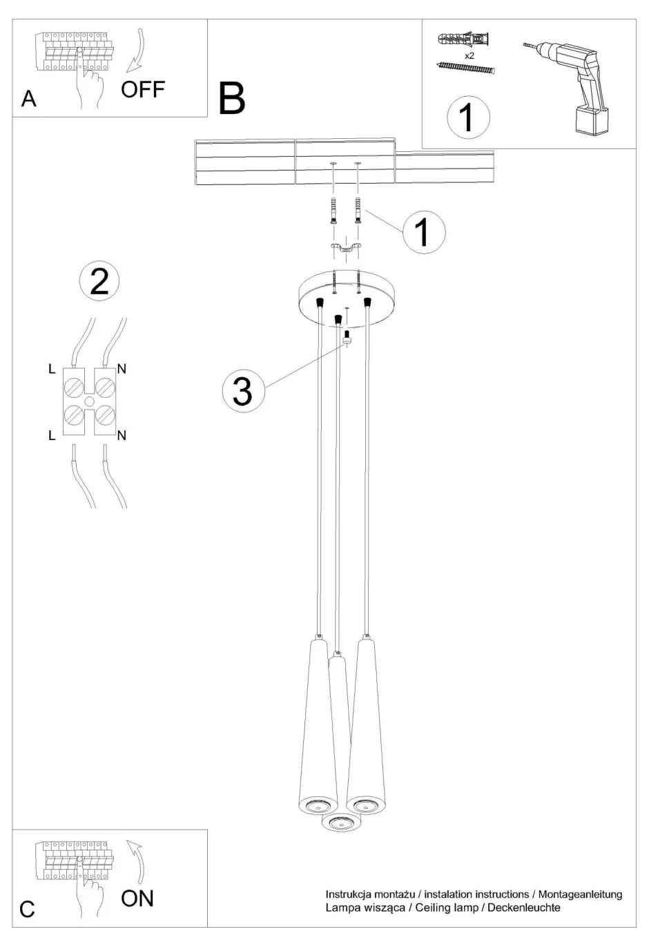 | Maße: | Breite: 200 mm | Hängetiefe: 1200 mm | Länge: 200 mm | Durchmesser: 200 mm | Durchmesser Schirm: 80 mm | Höhe Schirm: 380 mm | Durchmesser Sockel/Wandhalterung: 80 mm |