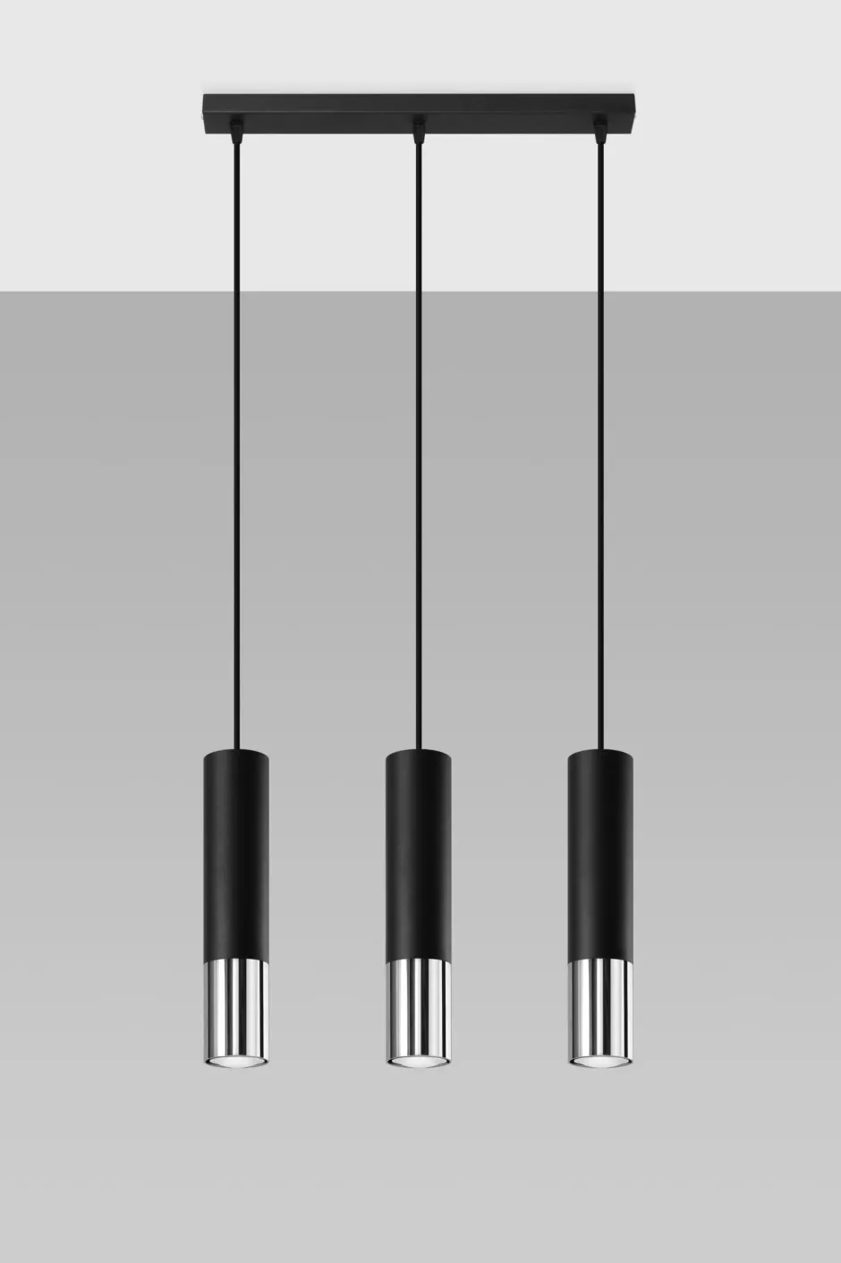 Moderne Pendelleuchte in Schwarz und Chrom