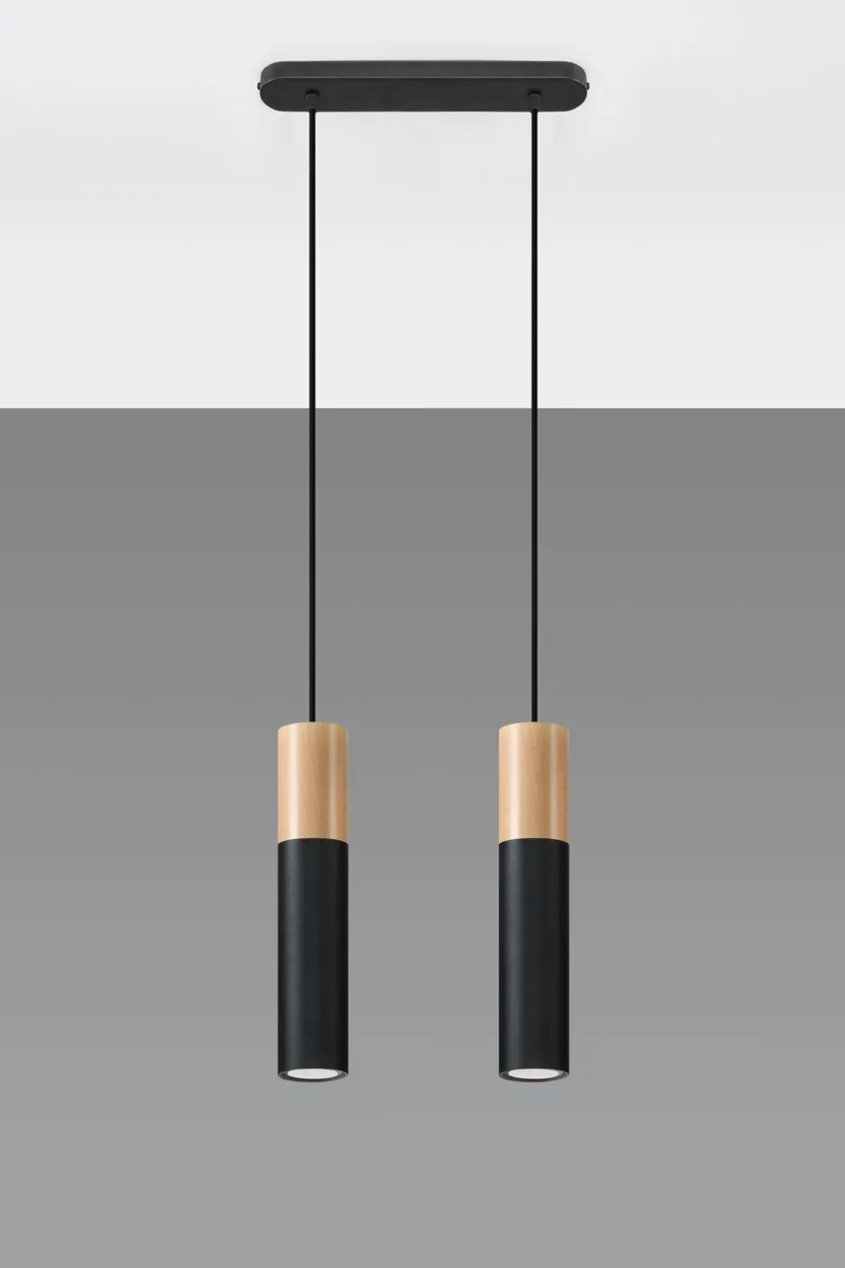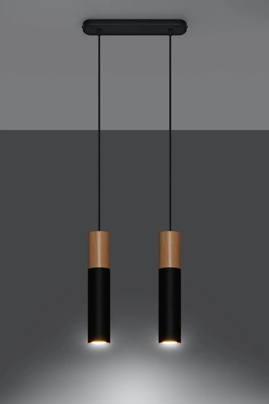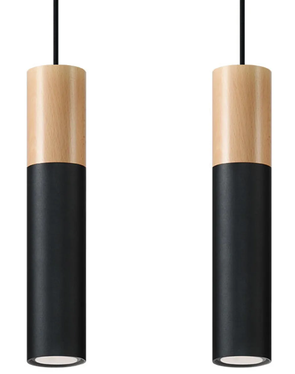 Skandinavische Pendelleuchte aus Metall und Holz