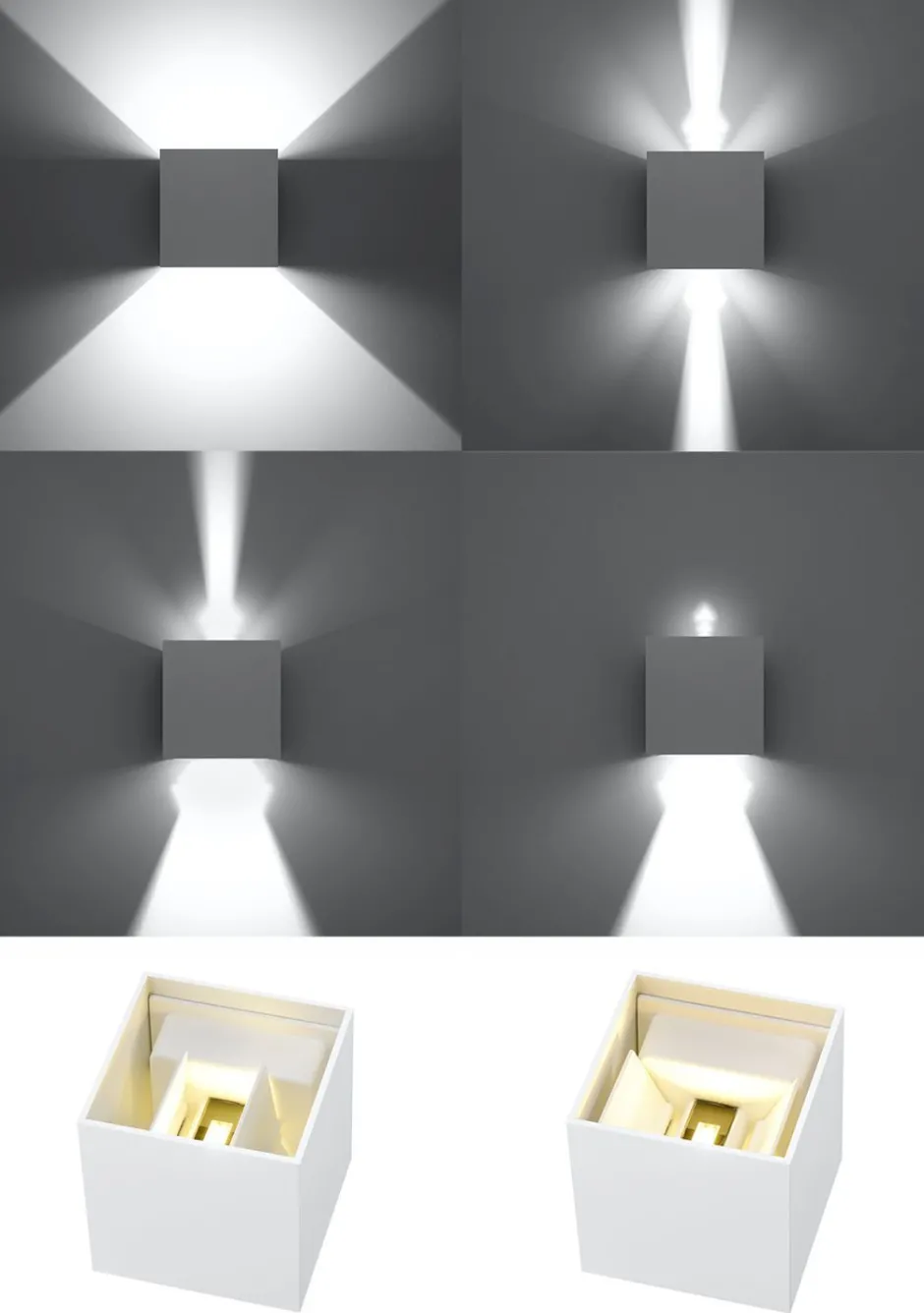 Quadratische Wandleuchte aus Aluminium im Weiß