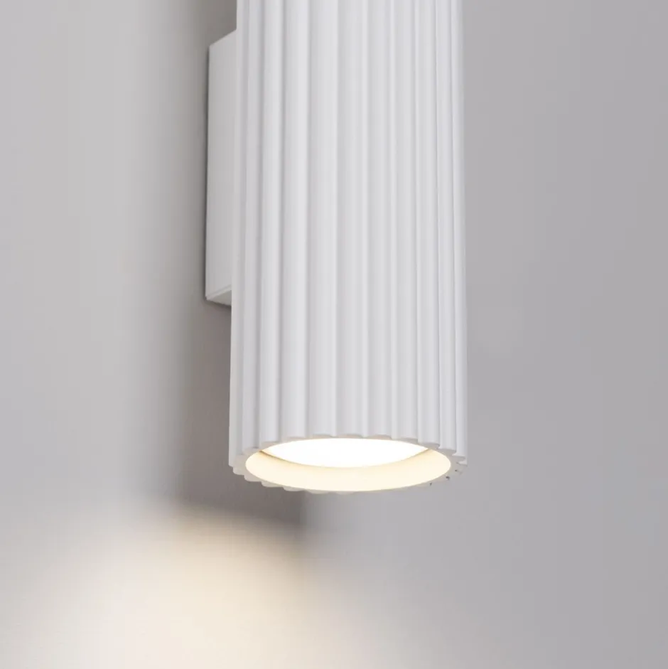 Moderne Wandleuchte aus Aluminium mit besonderem Lampenschirm in dezentem Weiß