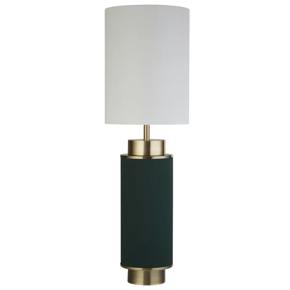 Das dunkle Grün in Kombination mit Akzenten in Messing verleiht der Tischlampe einen edlen Look, der auch in Hotels und Restaurants für ein besonderes Ambiente sorgt