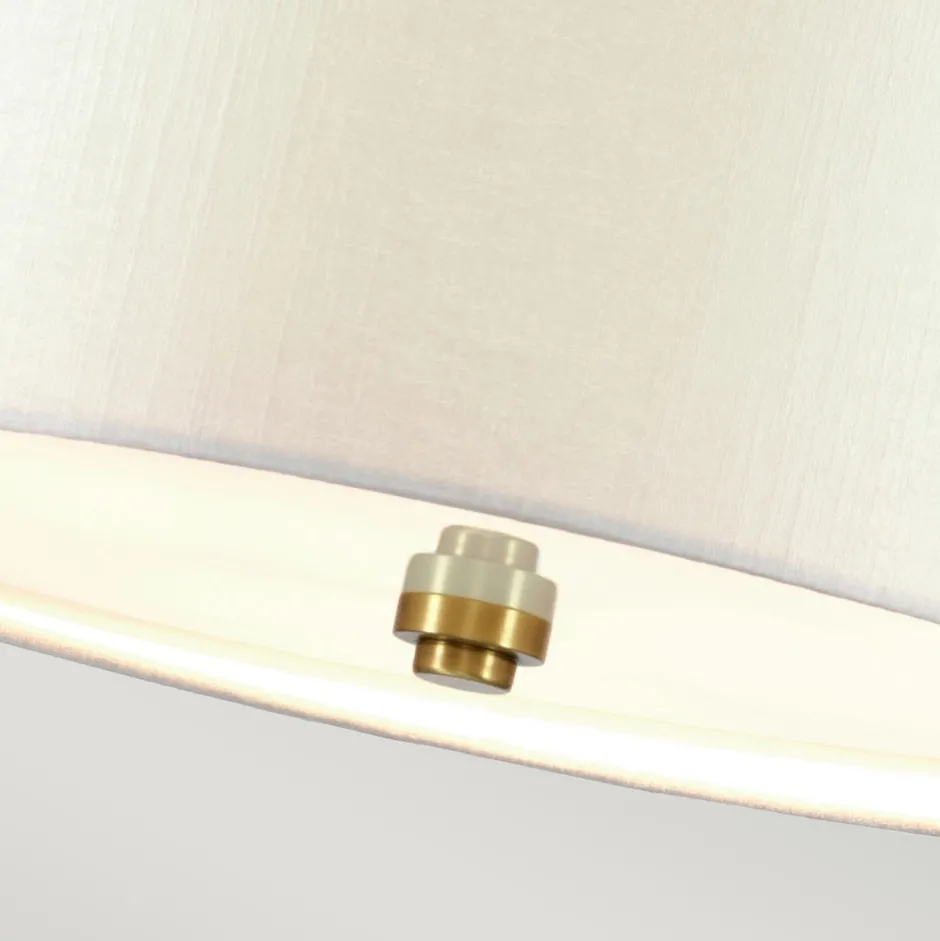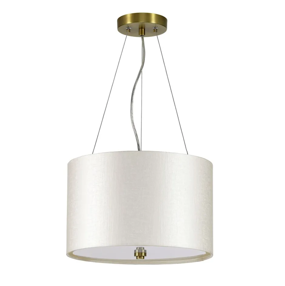 Runde Hängeleuchte mit Stoffschirm in Creme und Messing