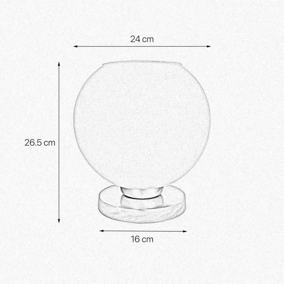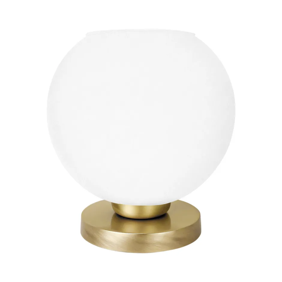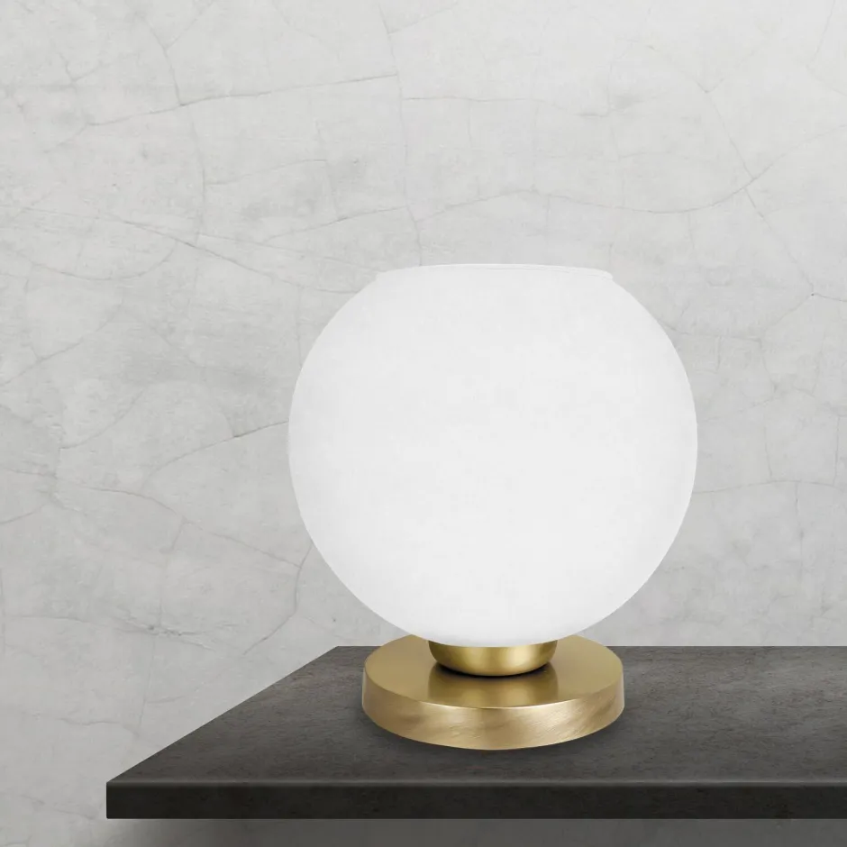 Kleine Tischleuchte aus massivem Messing und Kugelschirm aus Glas