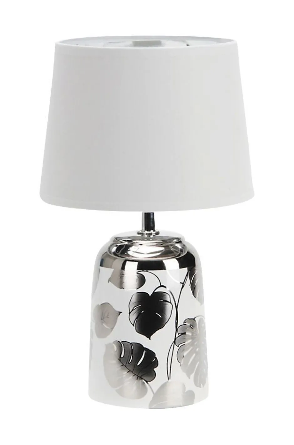 Moderne Tischlampe aus Keramik und Stoff in Silber und Weiß
