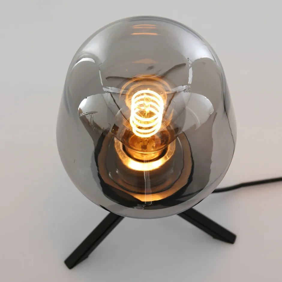 Moderne Tischleuchte aus Metall und Glas in Schwarz und Rauchgrau