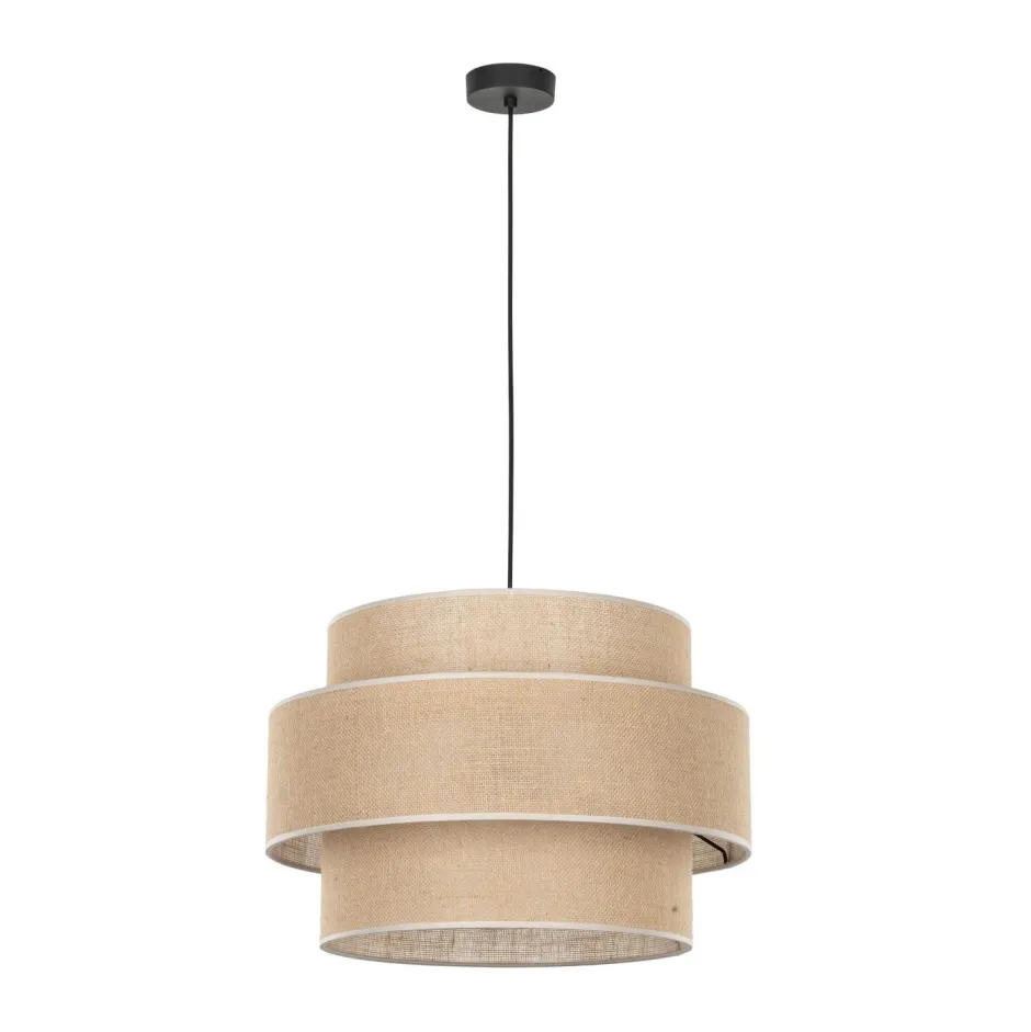 Moderne Pendelleuchte mit grobem Stoffschirm aus Jute für Schlafzimmer und Wohnzimmer