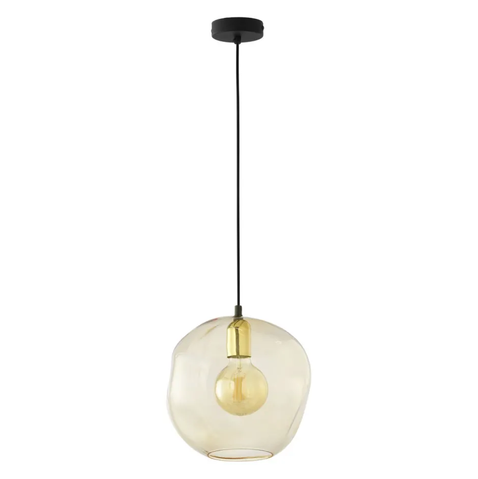 Der große Schirm erinnert dank seiner Form an eine mundgeblasene Kugel mitten in ihrem Erschaffungsprozess: ein absoluter Blickfang (Glasschirm ist keine runde Kugel)