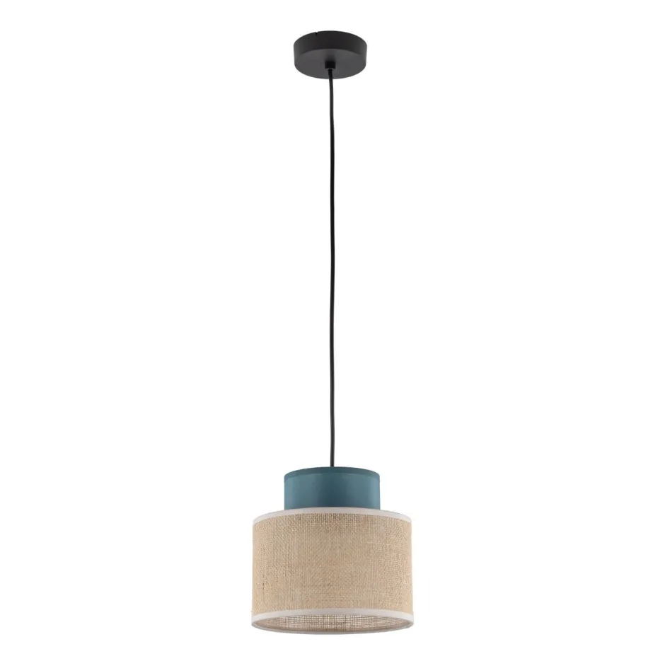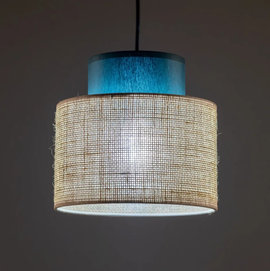 Die Kombination aus Stoff und Jute sorgt für einen wohnlichen Look, was die Hängelampe zu einem vielseitigen Lichtbringer macht
