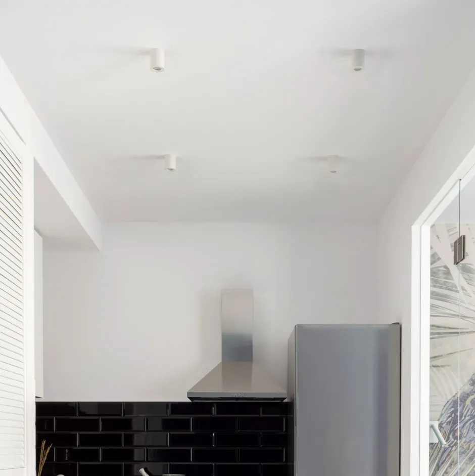 Zeitloser Aufbauspot aus Metall in Weiß für außen