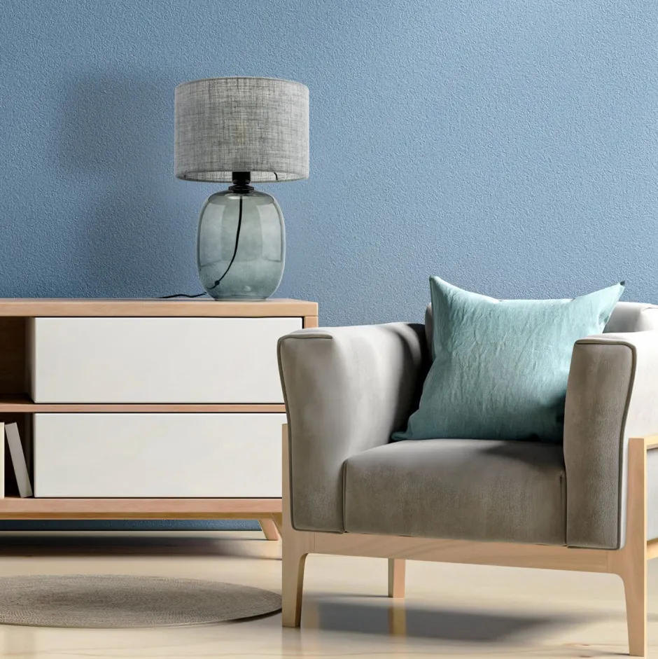 Wohnliche Tischleuchte mit Glasfuß und Stoffschirm