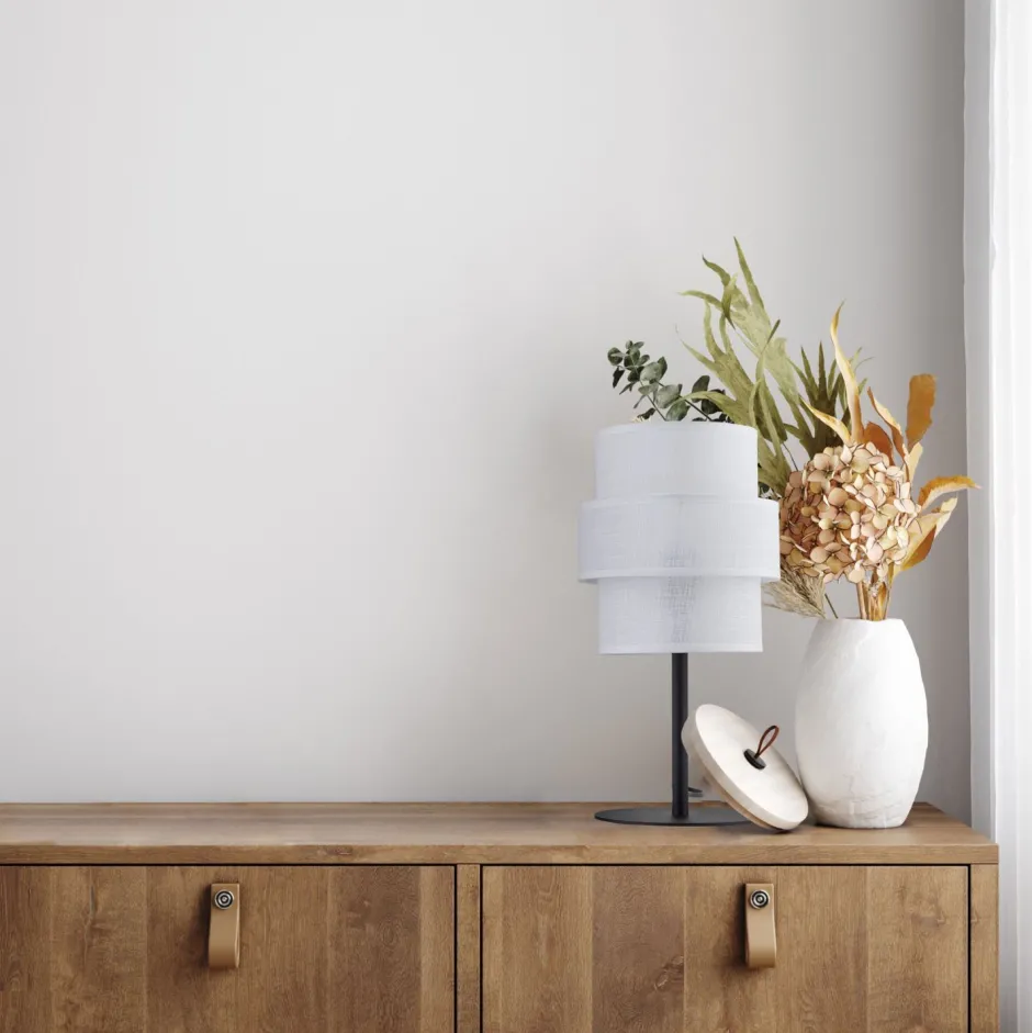 Moderne Tischleuchte mit grobem Stoffschirm für Wohnzimmer und Schlafzimmer