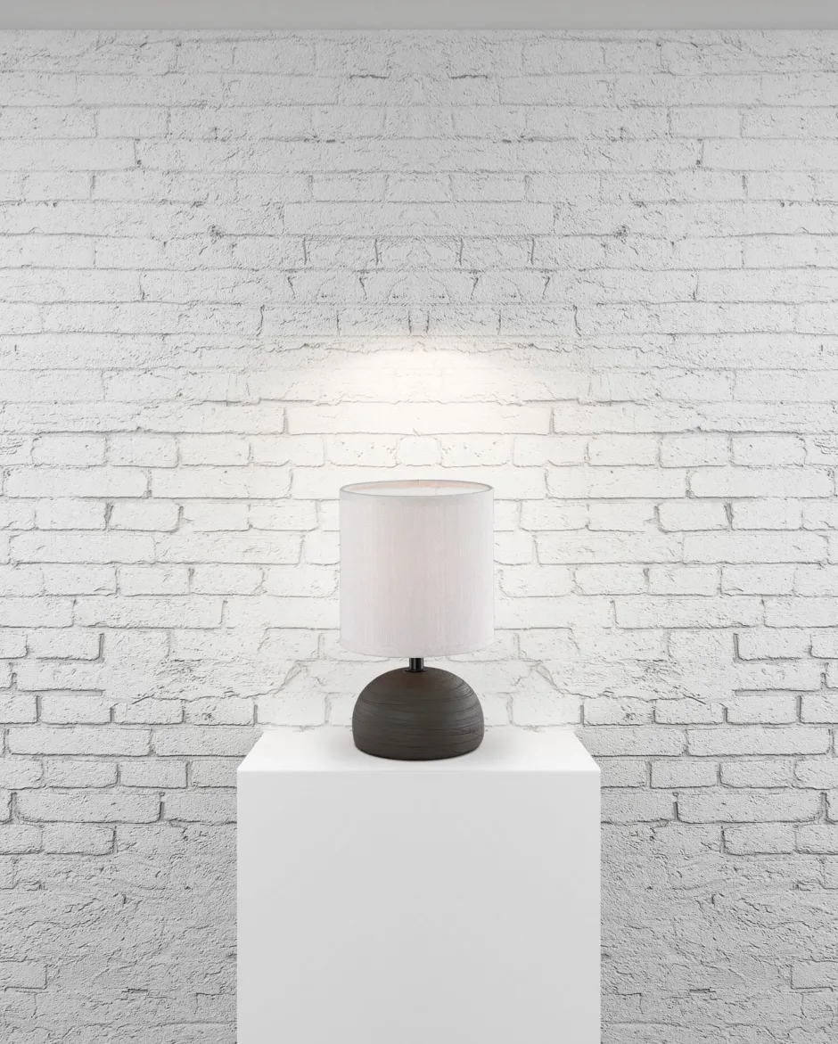 Moderne Tischleuchte in aus Keramik und Stoff in Braun und Cappuccino
