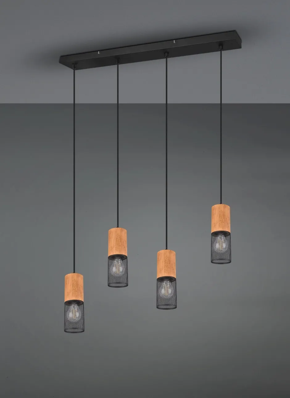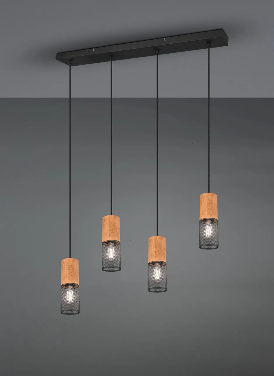 Dank Holz-Elementen hervorragend als wohnliche Pendelleuchte in Wohnzimmer und Esszimmer