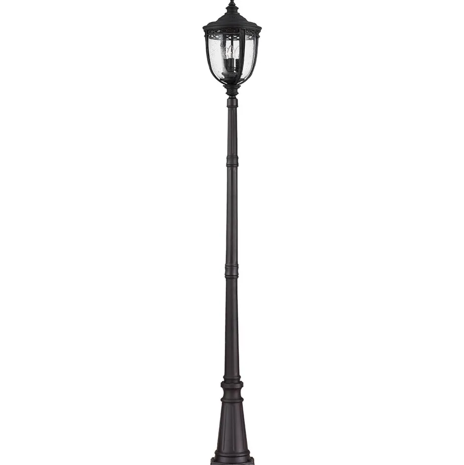 Das zeitlose Schwarz unterstreicht das Vintage Design einer schmiedeeisernen Straßenlaterne setzt überall stilvolle Akzente