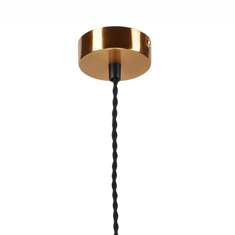 Der Stoffschirm bricht mit dem von Metall geprägten Stil, was der Hängelampe einen außergewöhnlichen Charakter verleiht