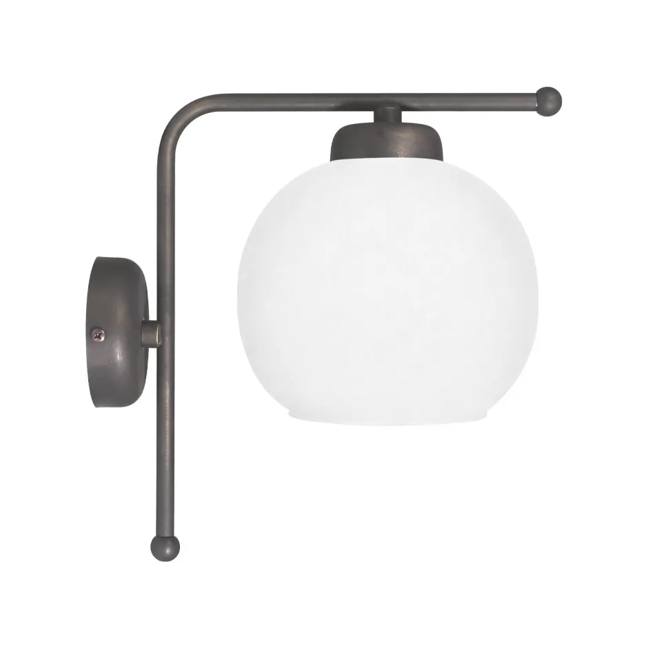 Jugendstil Wandlampe aus massivem Messing mit Kugelschirm aus Glas