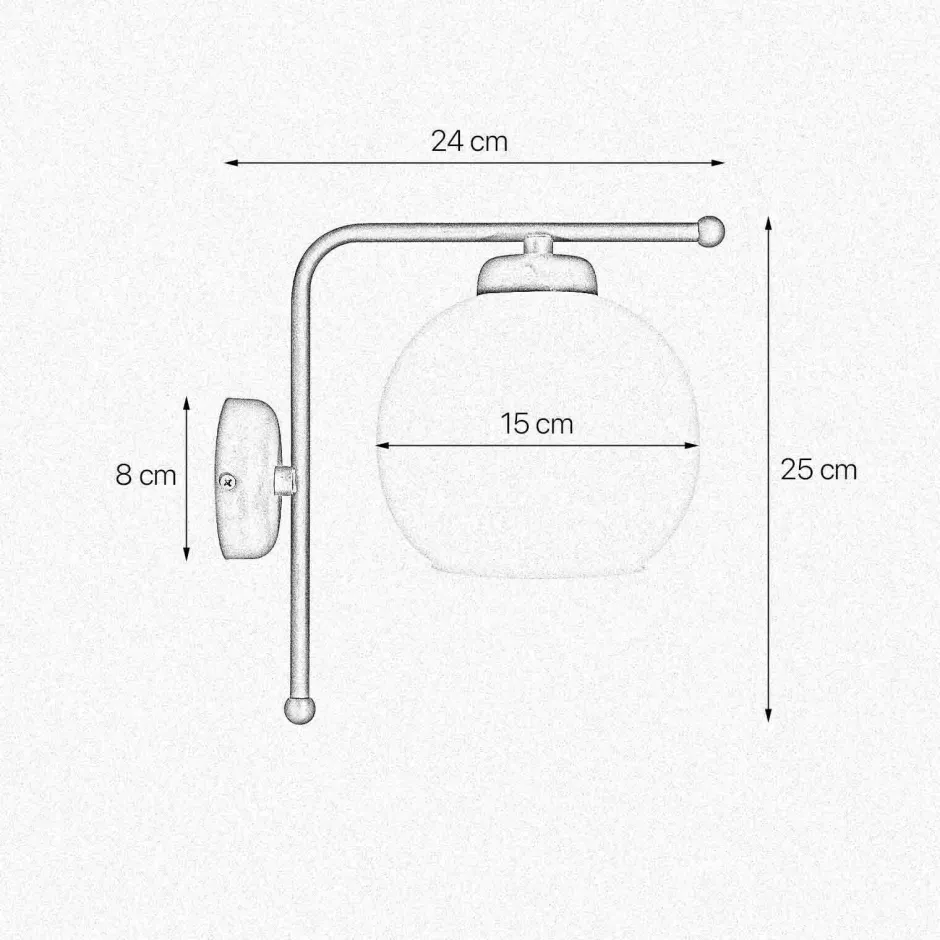 | Maße: | Breite: 150 mm | Höhe: 250 mm | Tiefe: 240 mm | Höhe Schirm: 140 mm | Durchmesser Sockel/Wandhalterung: 80 mm |