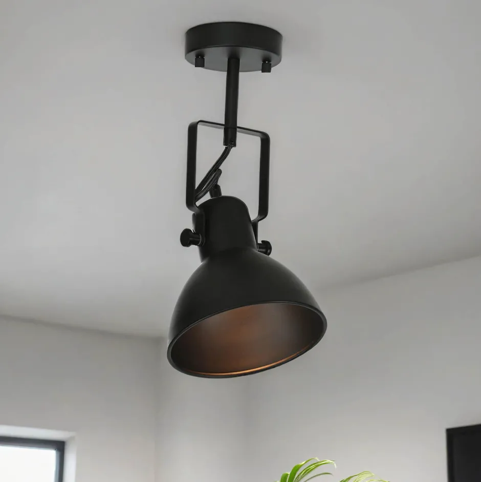 Der Deckenstrahler erlaubt dank des dreh- und schwenkbaren Schirms zielgerichtetes Licht