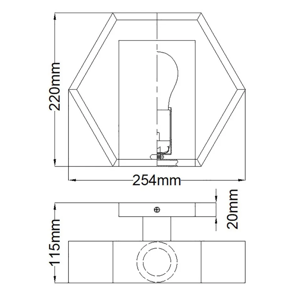 Der hexagonale Schirm setzt einen außergewöhnlichen Akzent, der aus der kleinen Wandlampe einen besonderen Blickfang macht