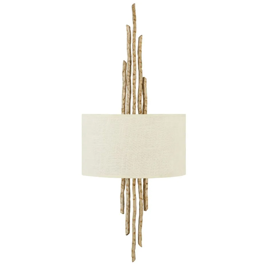 Die Stäbe in Creme-Gold verleihen der Wandlampe ein naturnahes Flair