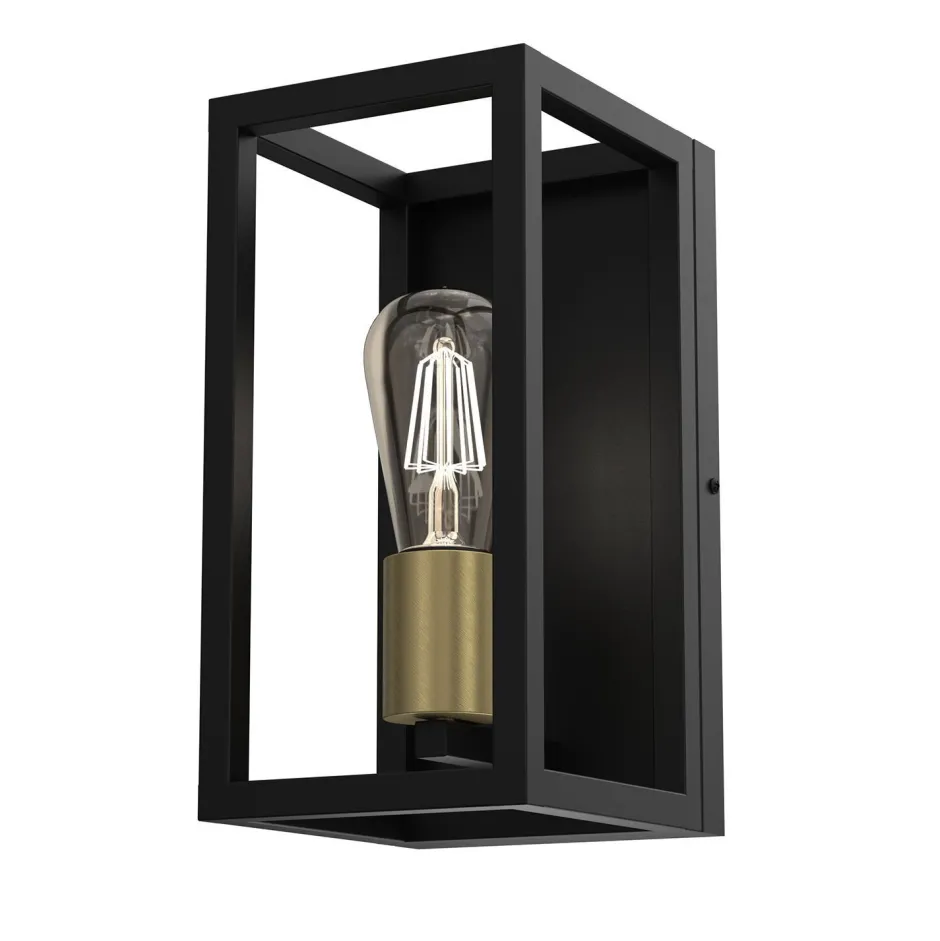 Zeitlose Wandleuchte aus lackiertem Stahl in Schwarz und Antik Messing