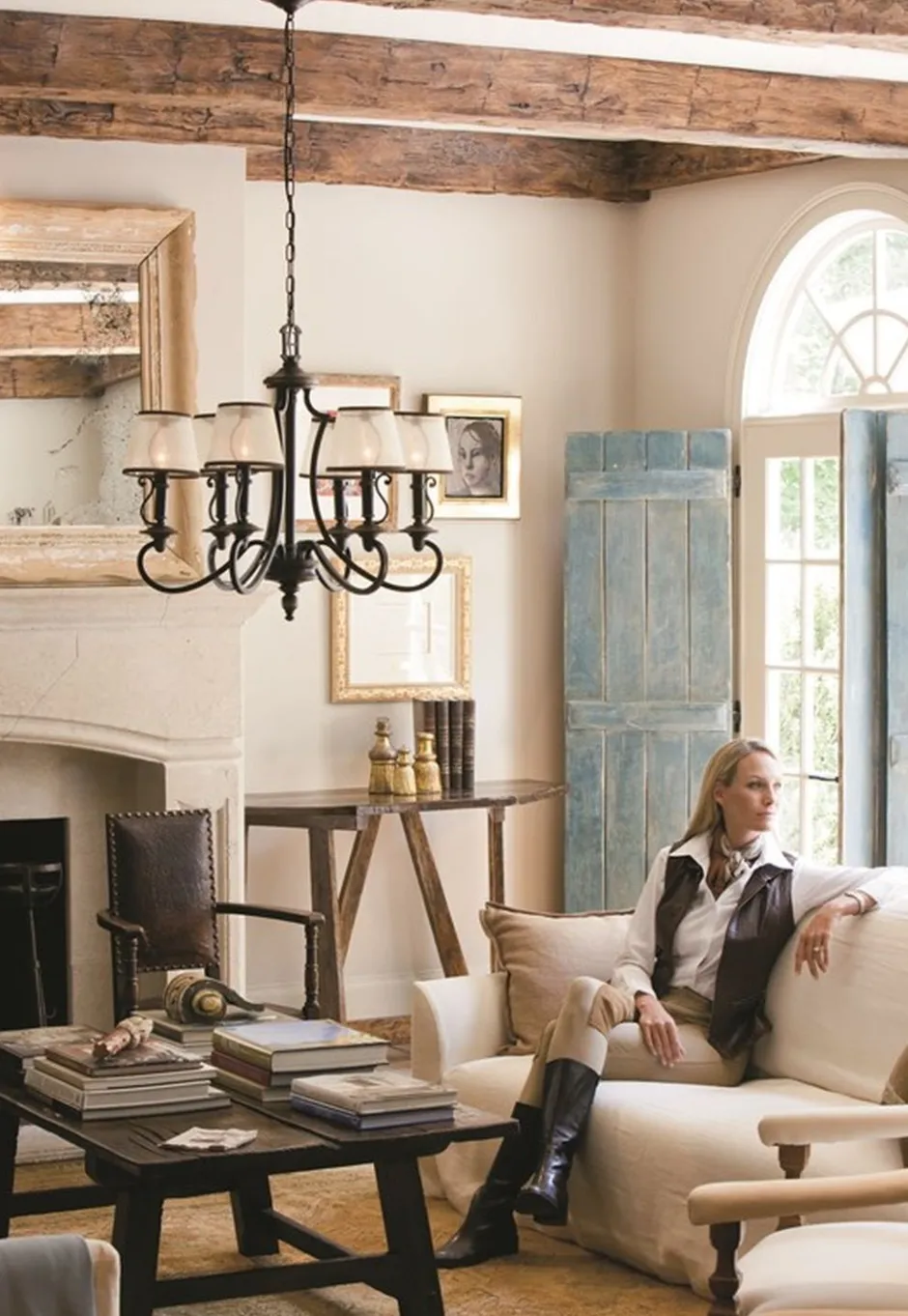 Rustikaler Kronleuchter mit 6 Schirmen für Wohnzimmer und Esszimmer
