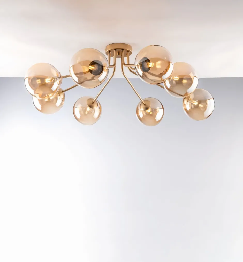 Moderne Deckenleuchte aus Metall und Glas in Messing und Champagner