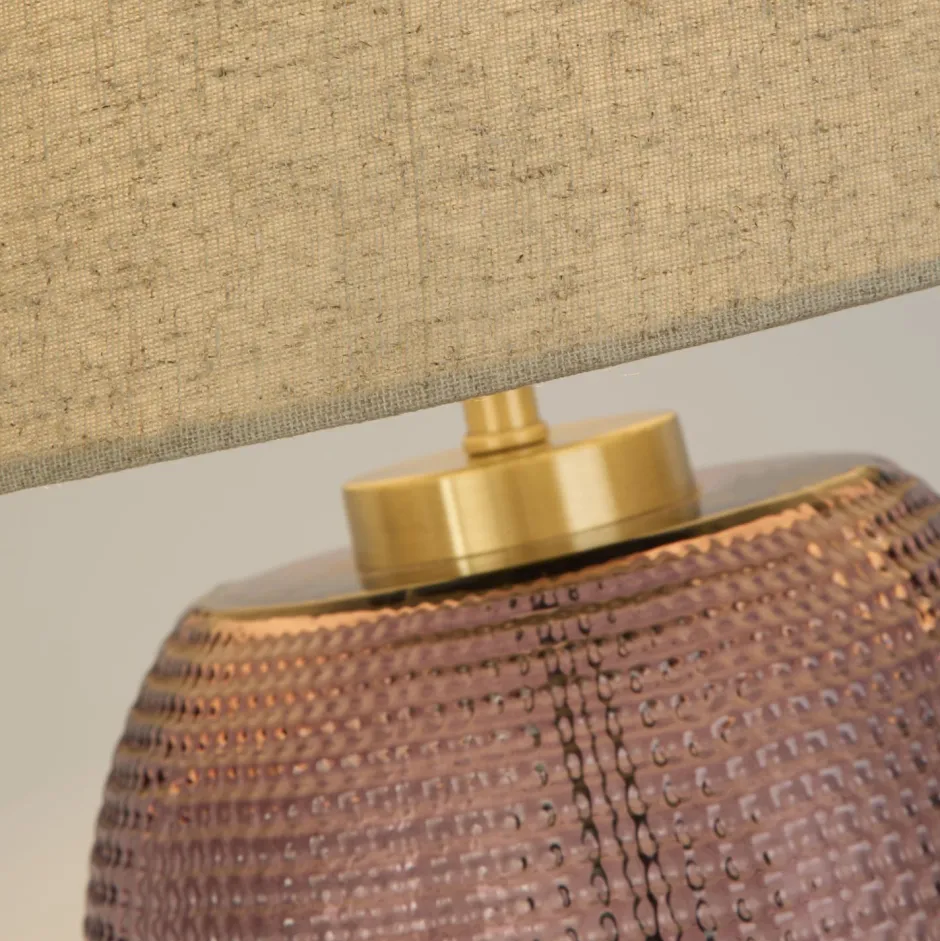 Moderne Tischleuchte aus Glas und Leinen in Pink und Natur