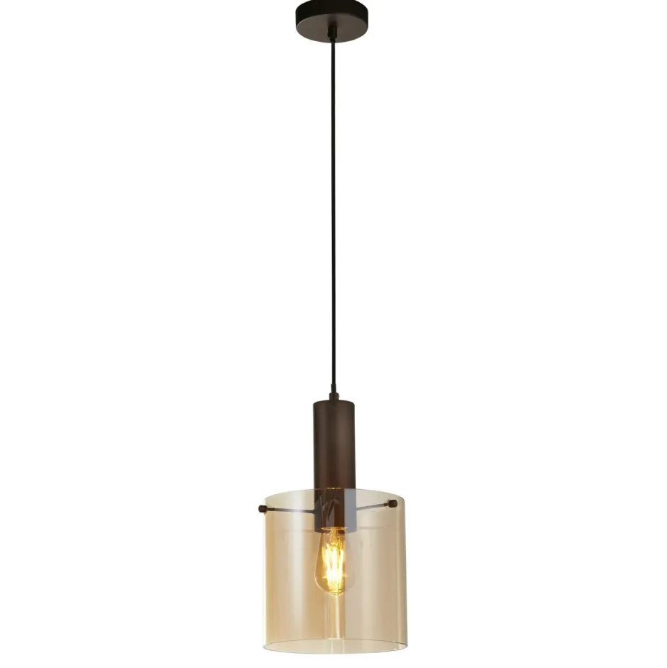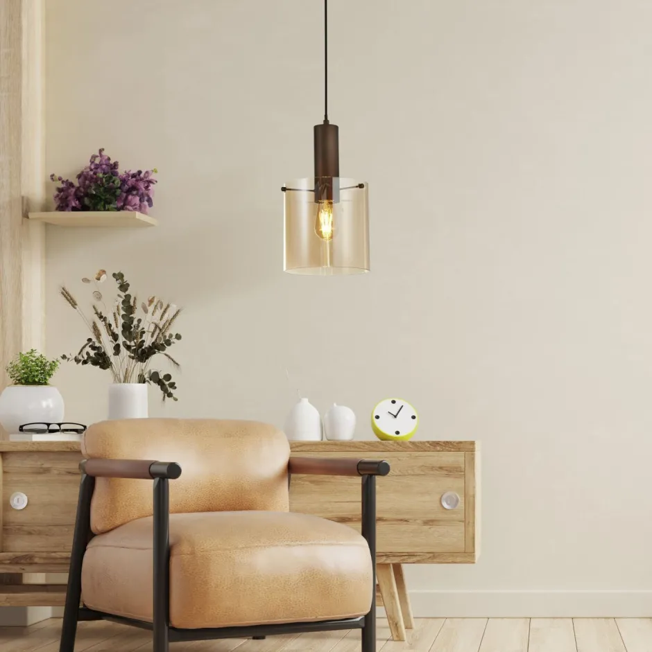 Retro Pendelleuchte mit Rauchglas Schirm