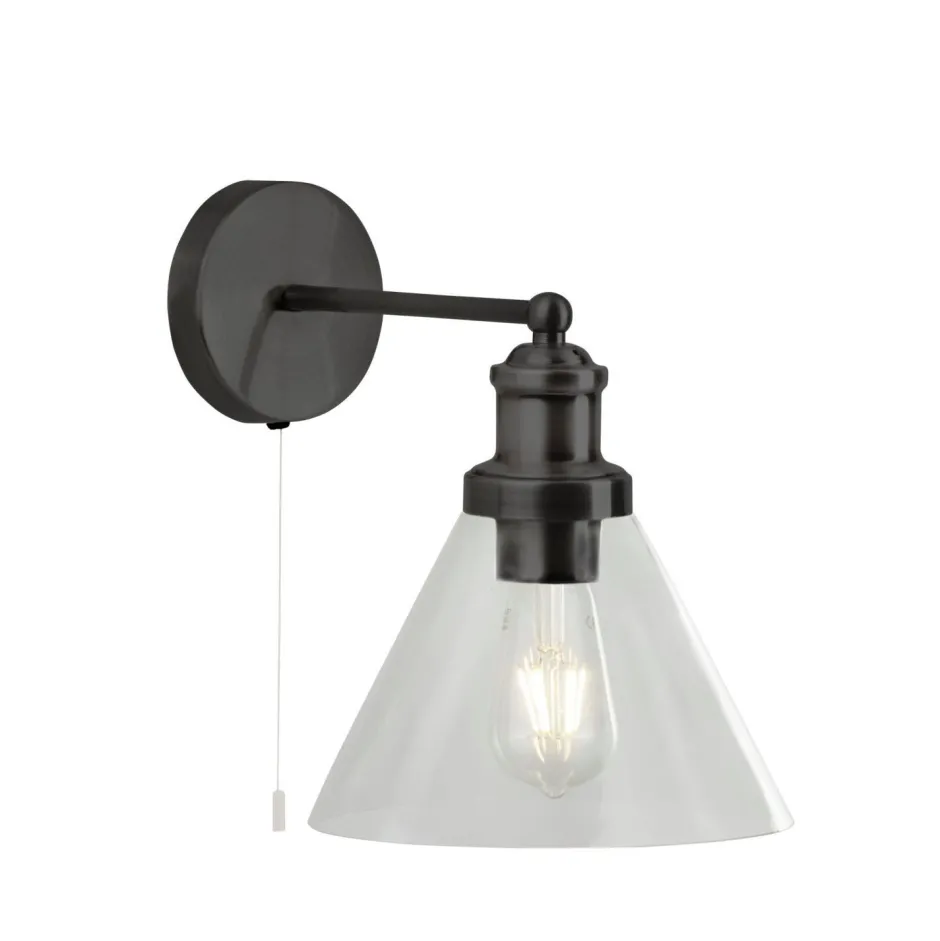 Mit stilvollem Zugschalter direkt an der Wandleuchte zum bequemen Ein- und Ausschalten – ideal für Bad, Küche und Arbeitszimmer