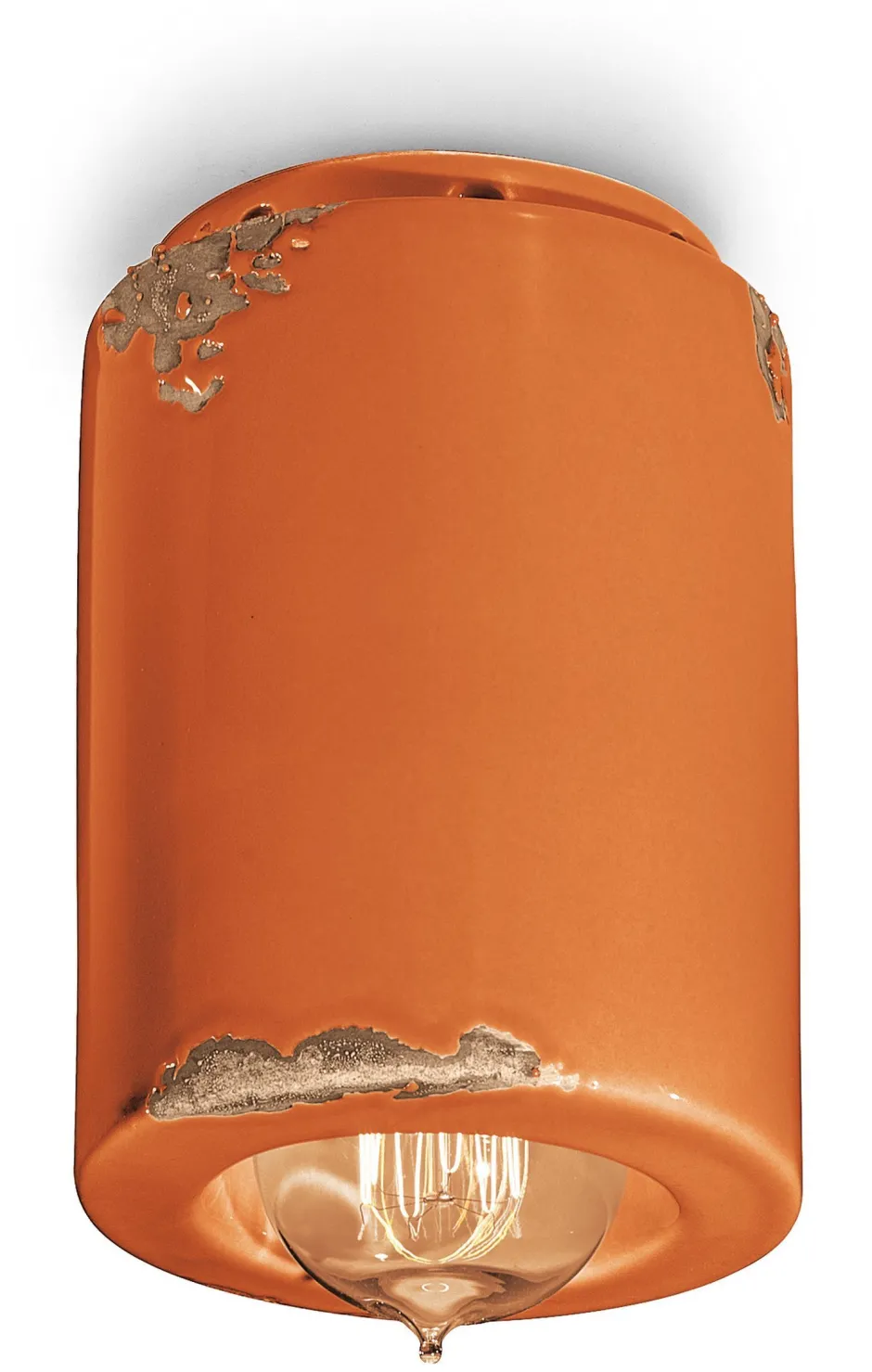 Runder Aufputz Deckenspot aus massiver Keramik in knalligem Orange