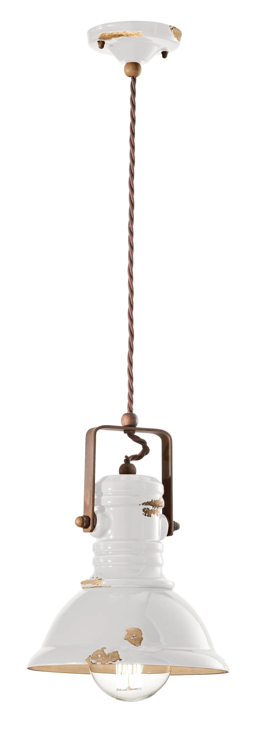 Vintage Pendelleuchte aus Keramik und Metall in hellem Weiß