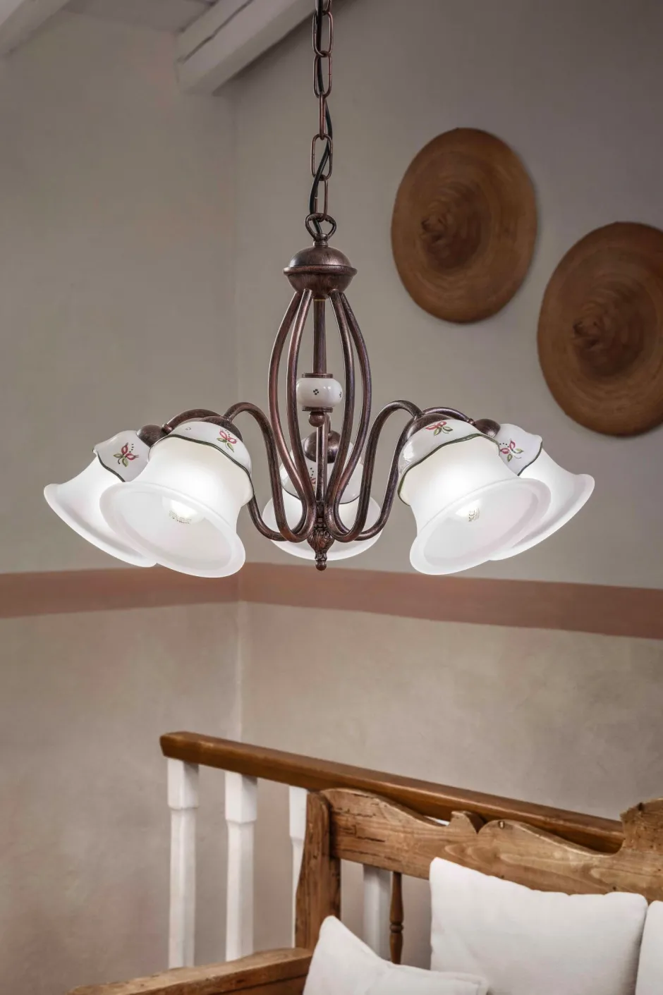 Das von Hand gemalte, florale Dekor macht aus der Hängelampe einen dekorativen Blickfang, der in jedem Raum perfekt zur Geltung kommt