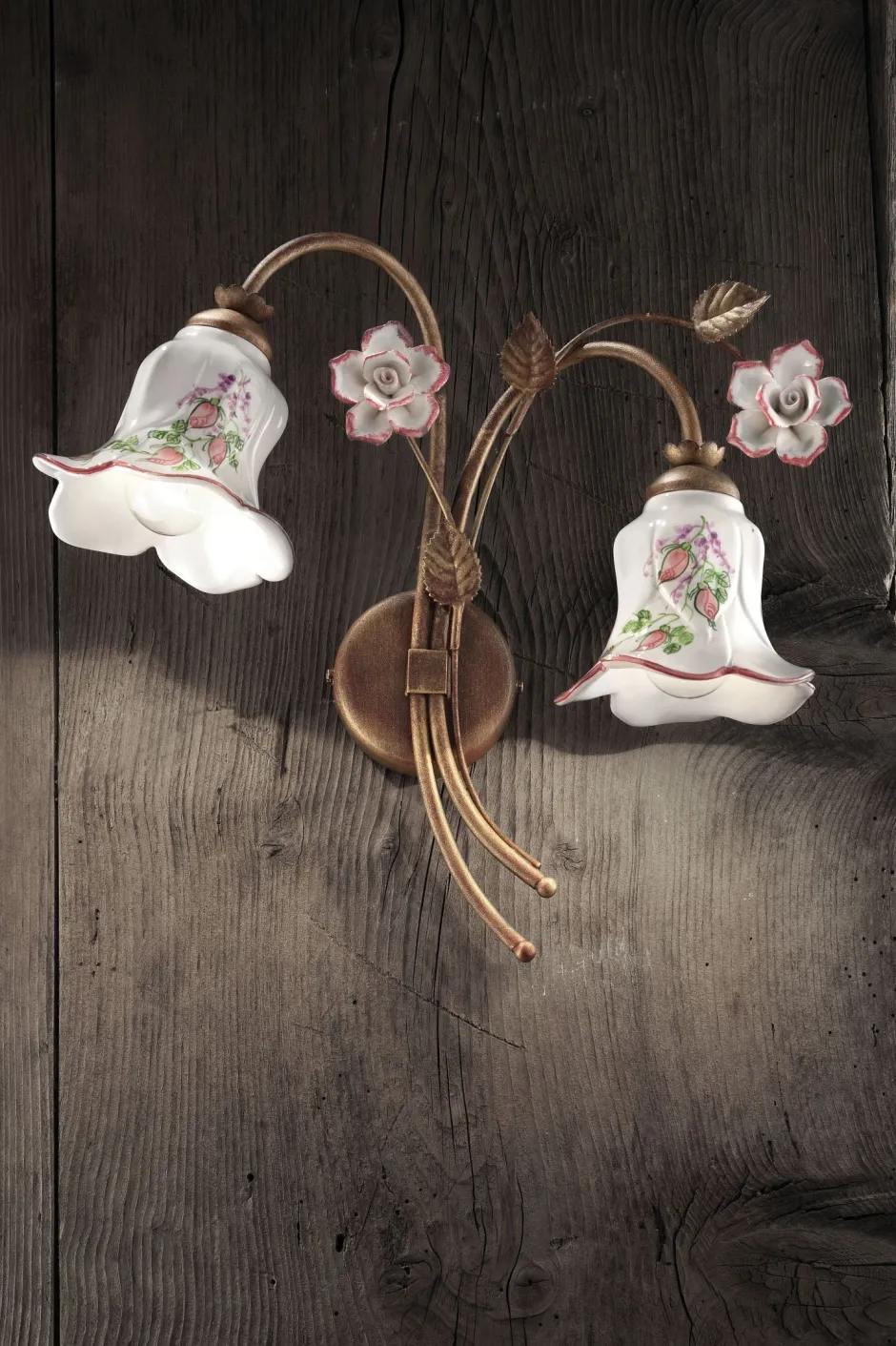 Florale Wandleuchte mit kunstvollem Keramik Lampenschirm