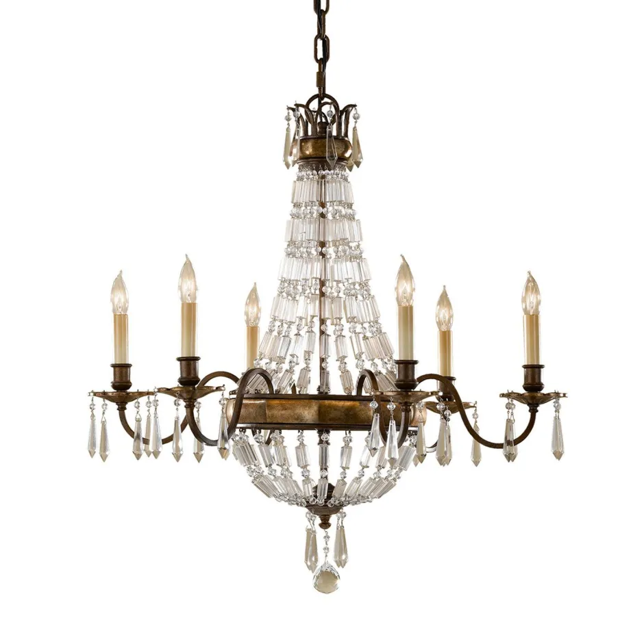 Kunstvoll geschwungene Arme und die spezielle Fassung erwecken den Eindruck eines antiken Lüsters