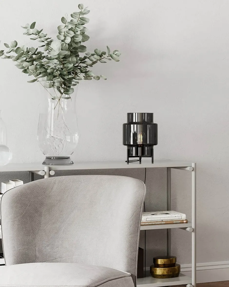 Dekorative Tischleuchte aus Rauchglas