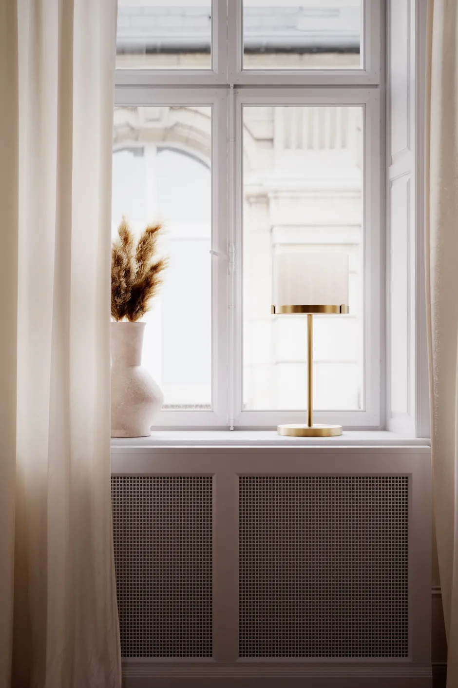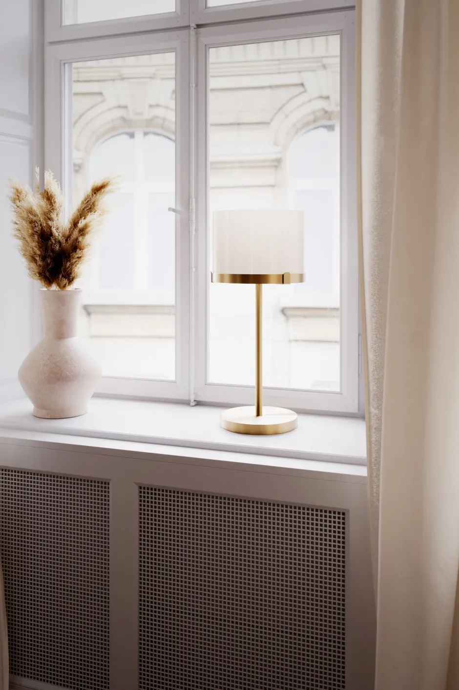 Das Licht wird durch den Lampenschirm blendarm gestreut – ideal als Fensterlampe, Beistelllampe und Nachttischlampe